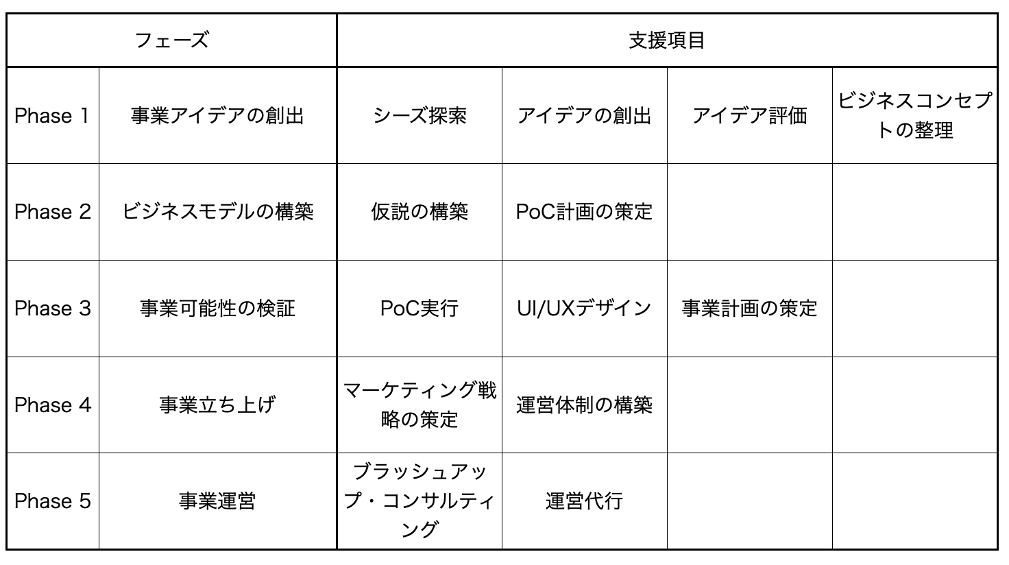 具体的な作業フェーズは次のとおりです。どのフェーズからでも、また、支援項目べつにもノウハウを提供いたします。
